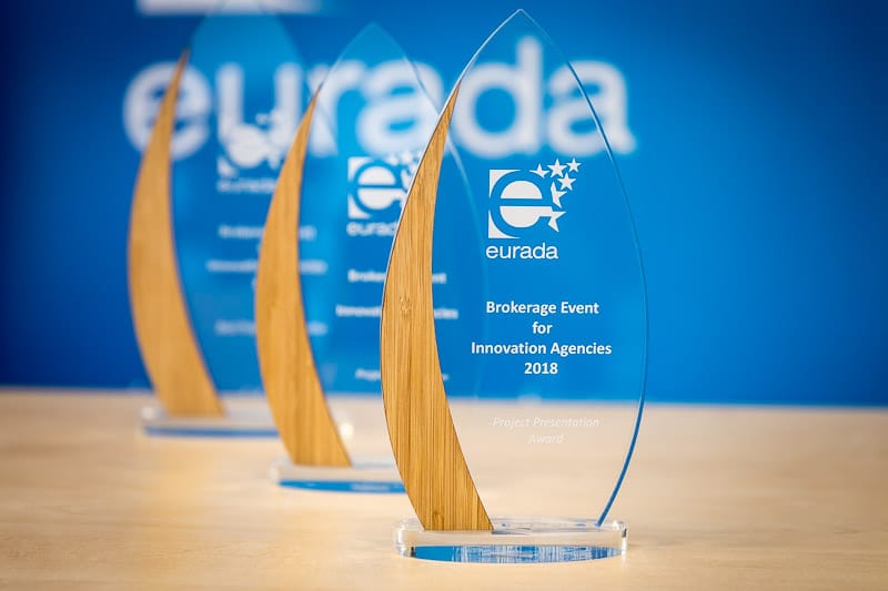 Prizes in front of an EURADA banner background during an event in Brussels for EURADA