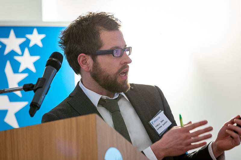 Gergely Tardos gives a speech during the 2020 Brokerage Event for Innovation Agencies by EURADA