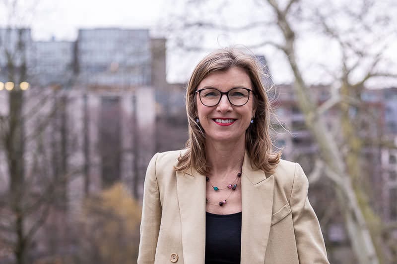 Portrait of Birgitta Bechtold wearing a gray jacket at Leopold Park, Brussels